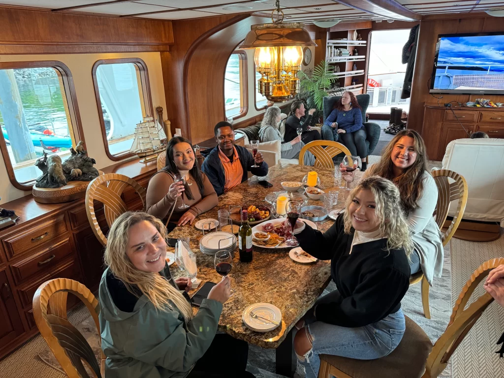 The beauty of Alaska is meant to be experienced up close. Bear Paw’s multi-level decks offer the perfect vantage point for photography and wildlife watching. Whether you’re enjoying dining on the aft deck or launching a kayak for a morning paddle in a quiet cove, the vessel is designed to bring you closer to nature.