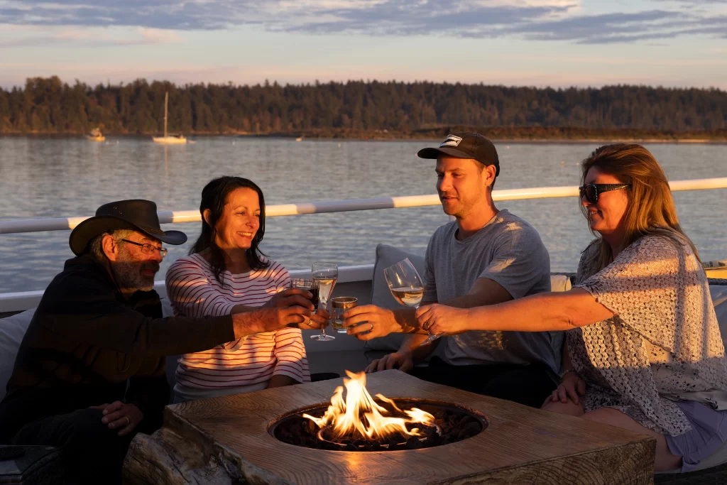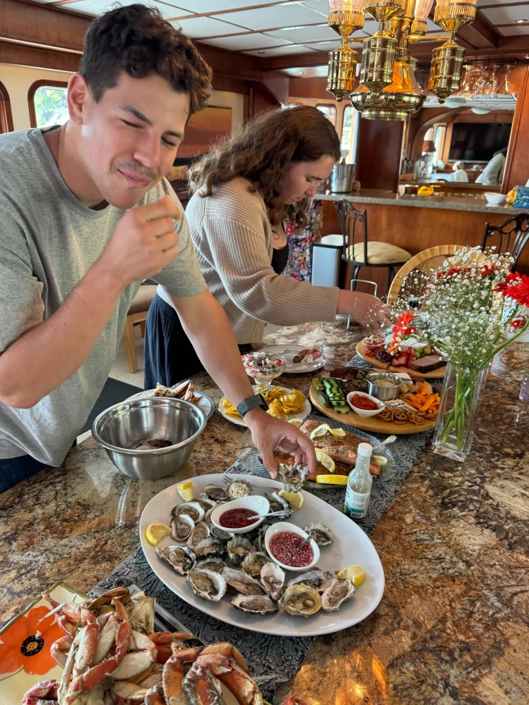 The main salon serves as your window to the world. With massive panoramic windows, you can track humpbacks or watch the sunrise over the San Juan Islands without leaving the comfort of our climate-controlled interior. Our open-concept galley allows you to watch as your private chef prepares world-class meals tailored specifically to your palate.